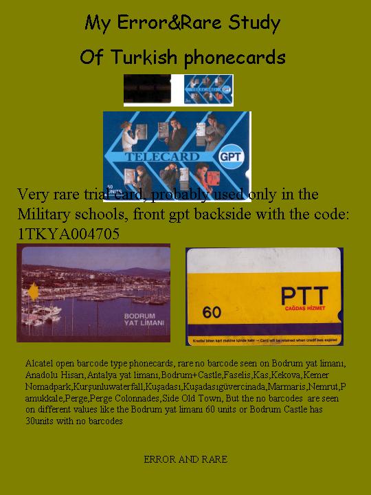 This page contains my study about the varieties,errors and the rare phonecards of Turkey.